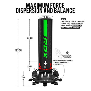 RDX F6 6ft Kara Green & Black Free-Standing Punch Bag With Mitts Set