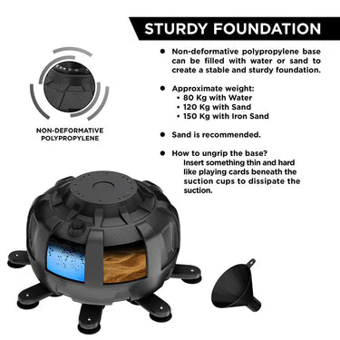 Wide base opening supports up to 120 kg of sand or 80 liters of water for secure placement