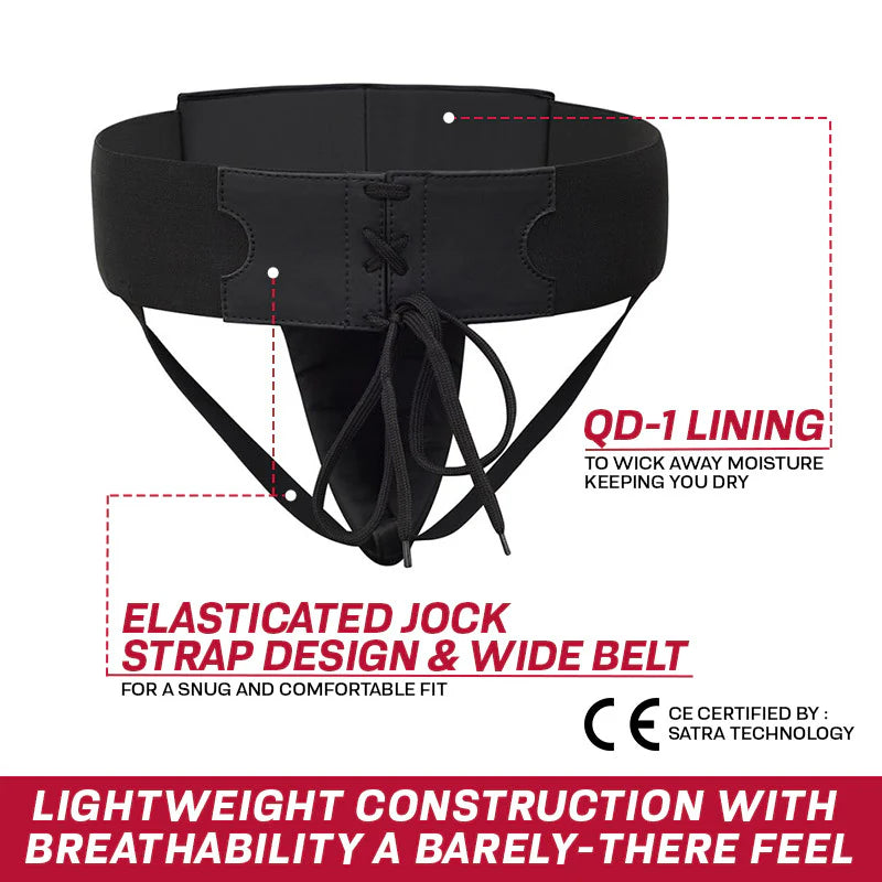 The dual-layer defense system cushions sensitive areas while dispersing heavy blows, keeping you safe through every session. The moisture-control lining ensures dryness and comfort, while the elasticated wide waistband keeps the cup securely in place, even during high-intensity movement. Perfect for boxing, MMA, Muay Thai, and martial arts training.
